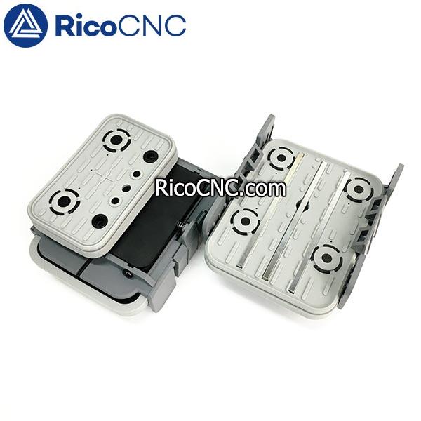 This longways vacuum pod is a height of 50mm 1 circuit consoles vacuum suction pod which suction pad at right side. VCBL-K1 125x75x50 R is the longways vacuum block for narrow parts clamping, used with Weeke/Homag and other PTP CNC machine centre with pod and rail table.